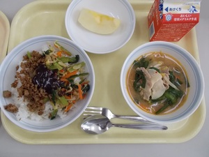 ビビンバ牛乳チゲスープりんご