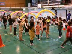 今日は一年生を迎える会がありました。6年生に手を引かれ全校児童に迎えられる一年生です。