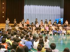 校長先生からは、お友達といっしょに「笑顔」を増やしていこうとお話がありました。みんなしっかり注目して聞いていました。