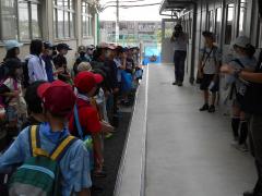 電車で「こどもの国」に行きました。出発式は遠足実行委員が進めました。みんなで決めた遠足のめあては「切り替えを早くして、ルールを守って、仲良く遊ぼう!」です。