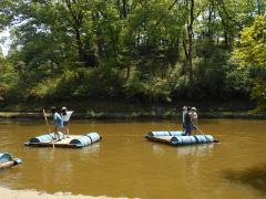 ドラム缶いかだは、想像以上にスリリングだったようです。誰も落ちることなく、乗りこなしました!