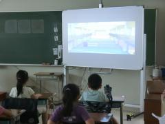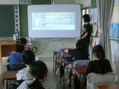 東急建設 作業所長 児玉様から工事現場の様子についてお話を聞き、その後、出来上がる校舎の映像を見せていただきました。