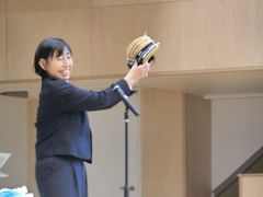 メジャーリーガー大谷翔平選手からみんなへのプレゼントが紹介されました。「野球しようぜ!」のメッセージが添えられたグローブに子供たちも Big Smile!!