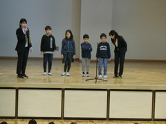 続いて、4年生の代表児童が3学期に向けた決意表明をしました。今までの自分を見つめ直し、より良くなるための挑戦について堂々と発表しました。