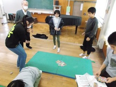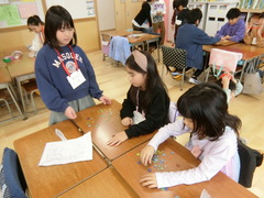 縦割り班活動に向けて、千束地区民生児童委員のみなさんに昔あそびを教わりました。