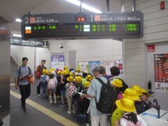 9日に多摩川台公園へ遠足に行きました。電車の中やホームにいるときは、静かに過ごそうと頑張っていました。