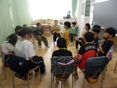 自己紹介をしたりゲームをしたりして異学年での交流を楽しんでいました。