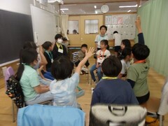 2日に離任式を行いました。こどもたちは、わくわくどきどきしながらこの日を待っていました。
