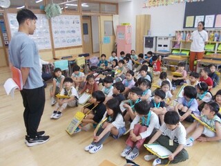その後、各クラスに分かれ、教室でゲームを楽しんだり、一緒に給食を食べたりしました。