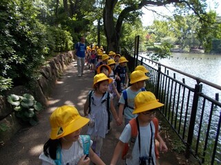 1年生は6日に洗足池公園に遠足に行きました。延期が続いていましたが、ようやく行くことができました。