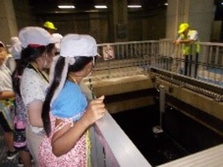 有明水再生センターでは、下水道の処理施設の中に入って、汚れた水がきれいな水になるまでの過程を学びました。