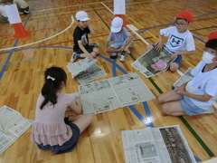 新聞紙で一番高い塔を建てられるのはどの班か!