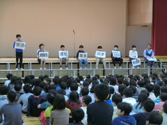 委員会のメンバーもその場で起立し、全校のみんなに知ってもらいました。