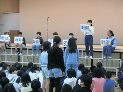 4月22日の全校朝会では、委員会や委員長の紹介をしました。