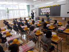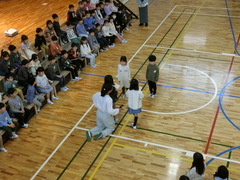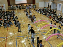 式が始まるまで1年生は、6年生とお話をしたり、じゃんけん大会をしたりして待ちました。