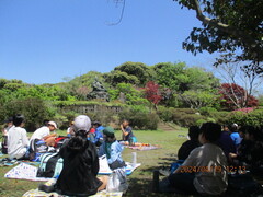 無事に源氏山公園に到着!源頼朝の像を見ながら、お弁当タイムをしました。