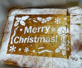 給食に、とてもかわいらしいアップルケーキが出ました。