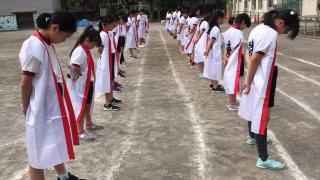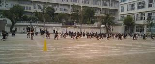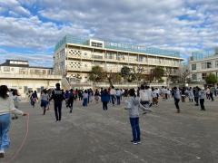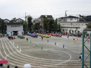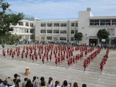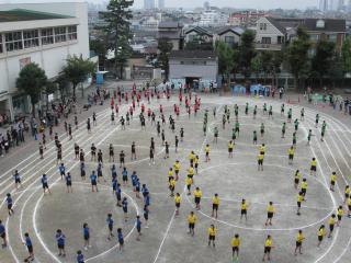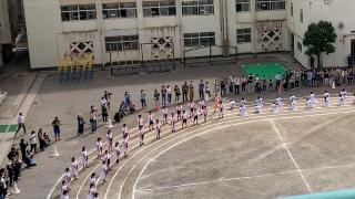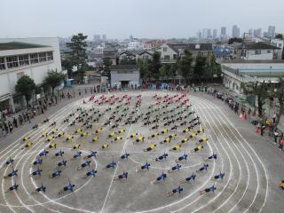 他の学年の児童が教室や屋上から参観しているのを見て、気合が入っている様子でした。