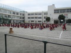 今日は、高学年(5,6年生)の体育朝会がありました。