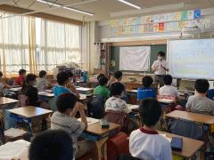本日は、水道局の方にお願いして、4年1,2組、3,4組に分かれて水道キャラバンを行いました。