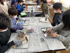石の中から木の葉の化石が見つかると、子供たちは大盛り上がりでした。