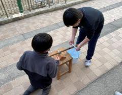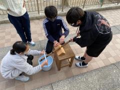 1,2年生は、自分たちで取り付けることが難しいため、5,6年生が設置してくれました。