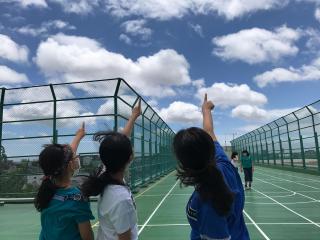 理科の学習で1時間毎に屋上に上がり、雲の動きや変化を観察しました。
