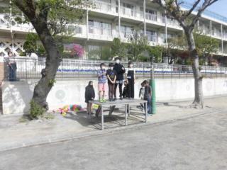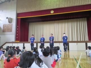 離任式を行いました。3月にお別れした先生方が子供たちに会いに、たくさん集まってくださいました。