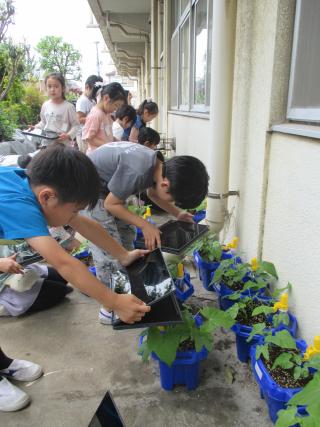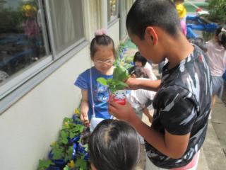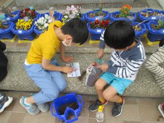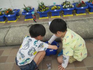 「早く芽が出てほしいな。」「どんな色の花が咲くかな。」と成長を楽しみにし、毎日の水やりを頑張っています。