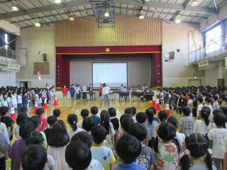 1年生~3年生が体育館に集まり、音楽集会を行いました。