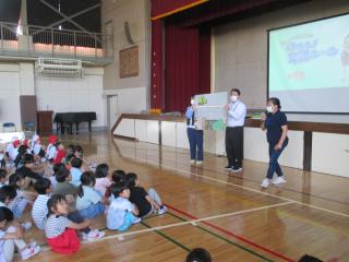 交通ルールや歩道の歩き方について、交通指導員さんや警察の方に教えていただきました。