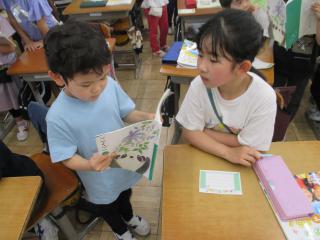 「はなのみち」の音読を毎日練習し、その成果を2年生に発表しました。