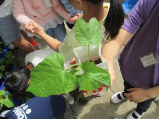 4月の学校探検に引き続き、2年生の協力のもと、朝顔の種植えをしました。