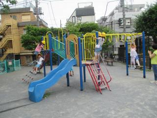 公園では、遊具や広場で思いっきり遊びました。他校の子供もいましたが、場所や遊具を譲り合いながら仲良く遊べていて素晴らしかったです。