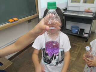 遊んでいるうちに「どうして人によって色や色の濃さが違うんだろう?」「色水を通してみる世界はどんなだろう?」などと、様々な疑問がわいてきたようでした。
