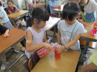 最後に完成した自分だけの色水をおうちに持って帰ることができ、大満足のみんなでした。
