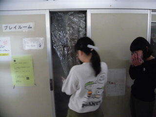 大田区役所職員の皆様にお越しいただき、プレイルームに煙を充満させ火災を想定した訓練を行いました。