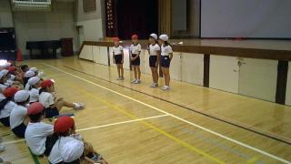 プール納めでは、クラスの代表が、自分が頑張ったことを発表しました。