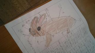 文章の冒頭は、「学校にキャラメルというウサギがいます。」から、実際に触ったウサギのことを絵と文章を交えてかきました。