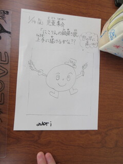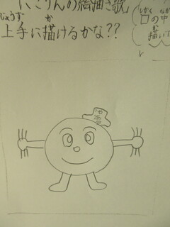集会委員会の人たちが考えてくれた絵描き歌を使ってみんなで池雪小学校のキャラクター「池雪にこりん」を描きました。