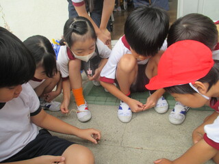 途中でどんぐりから虫が出てきてびっくり!「どんぐりの中に虫っているんだね。こんな虫なんだね。」新しい発見もありました。