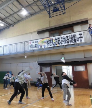 開会式で自己紹介をしていただき、池雪小学校のこどもたちと共に楽しんでいました。