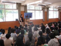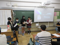それぞれのクラスで、留学生の出身国について教えていただいたり、日本の魅力を伝えたりして交流します。