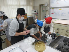 今回の調理実習は鍋でお米を炊くこととみそ汁作りに挑戦しました。