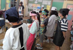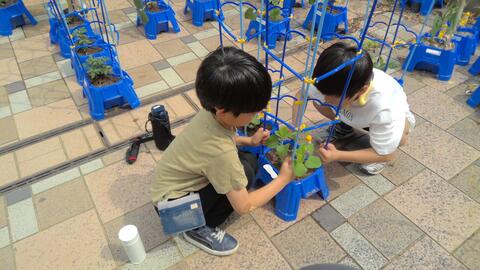 2年生は生活科の学習で、夏野菜を育てています。なす、きゅうり、ピーマン、トマト、枝豆、オクラの中から自分が育てたい野菜を選び、自分のプランターに植え替え、お世話をしています。学習の中で、地域の野菜博士にも、授業をしていただきました。野菜の作り方や野菜作りに対しての思いを教えていただきました。また、こどもたちの質問にも、1つ1つ丁寧に答えていただきました。