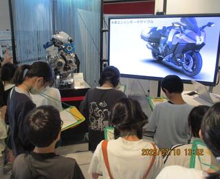 水素で走るバイクについて学んでいる様子(KAWARUBAさん)