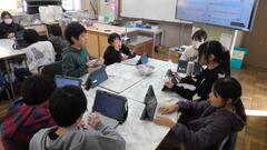 3学期のおおたの未来づくり『せせらぎ館・公園の魅力を発信しよう』の学習の第1時として、連携企業の方をお招きし情報リテラシーについて学びました。報道記者体験ゲームを通して、情報の発信者として責任をもって発信の前に立ち止まり、真偽を確かめることや、複数の情報を基に多面的に物事をとらえる大切さを学びました。