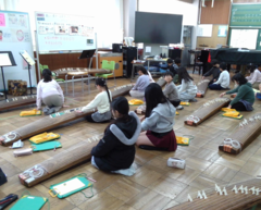 3学期になり、身近なものを使ったおもちゃづくりの学習に取り組んでいます。