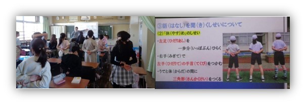 話の聞き方や集合の仕方など、体育の授業の基本について写真や動画を見ながら学びました。