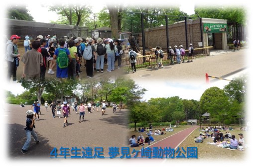 初夏を思わせる陽気の中、4年生が電車と徒歩で夢見ヶ崎動物公園、遠足に行ってきました。